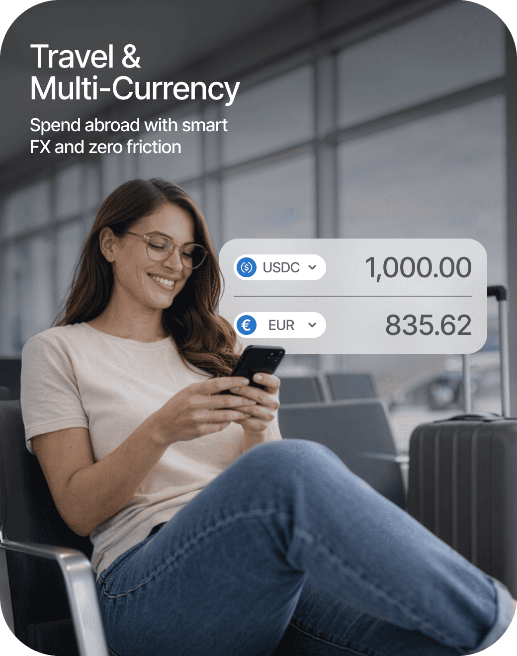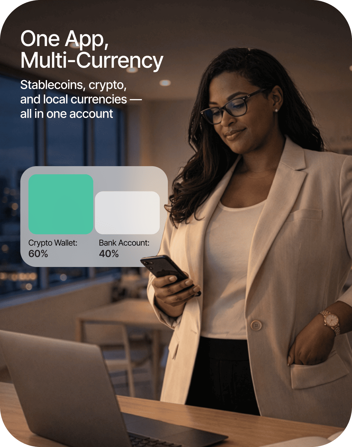 Yoney combines a real bank account experience (IBAN, local transfers, card) with a self-custody crypto wallet — in one interface — powered by an AI finance layer.